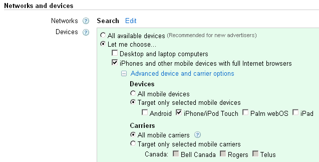You are also able to target specific carriers. So if you’re an advertiser in Canada, you have the option of choosing any combination of Bell, Rogers and Telus.