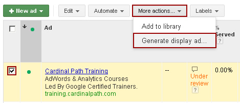 - Then click “More actions…” and “Generate display ad…”