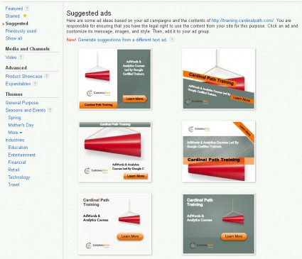 Google Display Network provides great opportunities to expand advertising audience. But many advertisers don’t have the budget or time for creating display image ads. Yes, the AdWords system has an Ad Builder which provides a fast and easy way to build the ads. But there is a way to create the ads even easier and faster by using Suggested Ads.