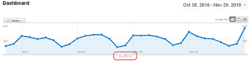 To view your annotation click the down arrow beneath the chart. When viewing you annotation you will see all annotation for the time period of the chart, their dates, description, and the email address of account that made the annotation. If you need to you can also go back and edit your annotations (you can’t edit someone else’s annotations). If you click on the ‘edit’ link you are brought back to the same interface that is used when creating your annotation. At this point, you can make changes or delete your annotation. You will also notice on the horizontal axis of the graph a tiny icon letting you know that an annotation has been made for that day.