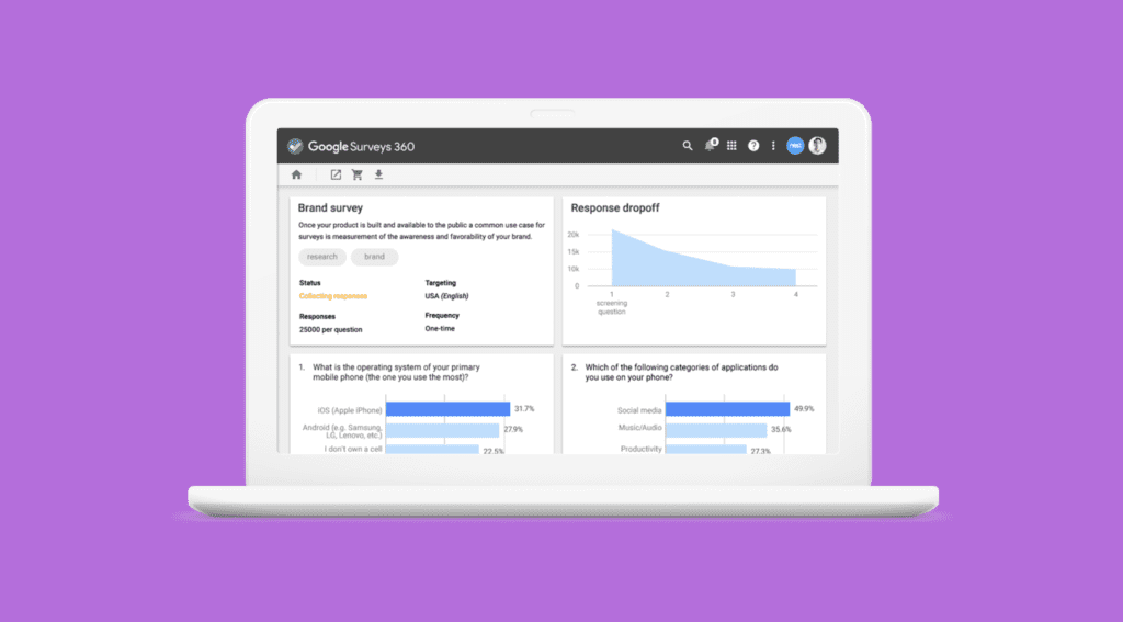 Google announced Google Surveys 360 this week, a cousin to Google Surveys and a new member to the Google 360 suite of products. With Google Surveys you can access a representative sample of thousands of responses within hours without sacrificing accuracy for speed. Google does this through its in-house validation methods as well as endorsements and partnerships with reputable names in the research industry.