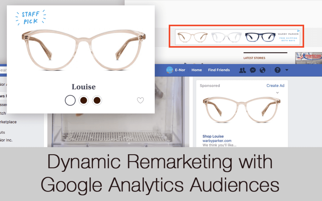 However, let’s say later you are on Facebook and notice an ad in the right-hand rail with the specific pair of glasses you viewed. The messaging reads, “We think you’ll like…”. This is an example of dynamic remarketing.