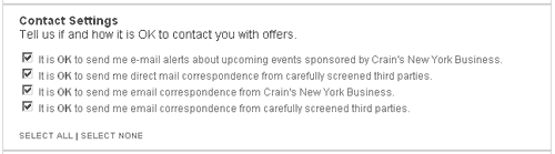 A special thanks to reader “Erin” this week, who sent in a link to Crain’s New York, and a horrible unsubscribe story of her own. Much like last weeks complaint about Codemasters, Crain’s unsubscribe policy made her jump through hoops in order to opt out of receiving email. Always eager for an excuse to go hoop jumping, I decided to sign up and… well… jump in.