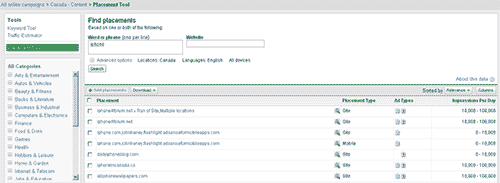 During the course of your display campaign you will want to start accumulating a list of quality website to run your ads. You can get a head start with this list by using Google’s placement tool. This tool will give you the option to find placements through the following ways:
