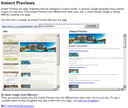 A few days ago Google added a function to Troubleshoot Instant Previews in Webmaster Tools but to be honest it is pretty useless in its current state. Yes, it is under Labs section but