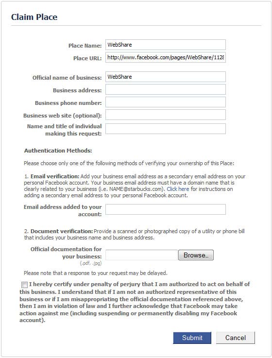 Claiming a Facebook Place: