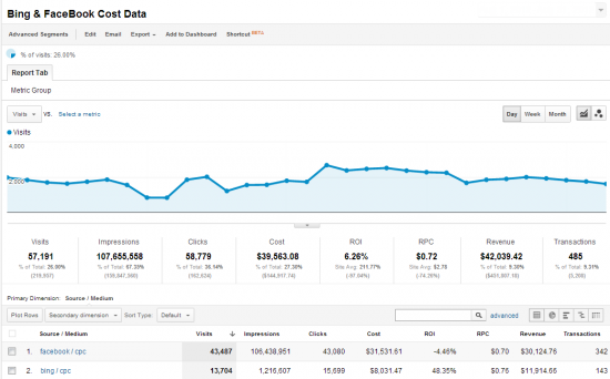 Google Analytics has just released the newest weapon in their arsenal for online marketers. This new feature allows users to import cost data from any advertising platform directly into Google Analytics reports. With this data, users can quickly and easily determine ROI of marketing campaigns right in GA. We have been lucky enough to work with this feature on one of our clients, and the new insight this data provided was quite impressive.