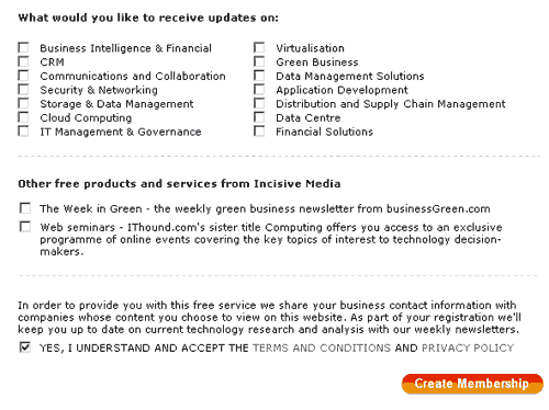 Earlier in the week I had downloaded a case study from ITHound.com (I don’t really remember why), and while signing up I had thought “well, maybe this will be a good test of their use of opt-in”. I noticed, quite to my surprise, that they hadn’t prechecked anything, which was a good sign.