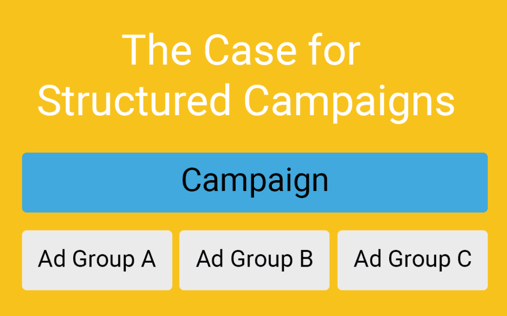 Google Ads, for example, is organized around the hierarchy of campaigns > ad groups > keywords.