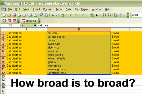 Just about everyone running a google adwords account has broad keywords inside their adgroups. This is mostly because this is the default match type. What most people don’t realize is that bidding broad is like giving Google permission to waste your money on any terms its “expanded keyword matching technology” decides are “relevant”. In many cases the terms can be far from relevant.