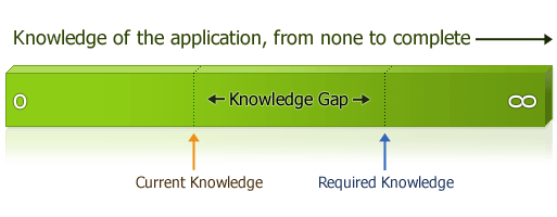 Using the two concepts of current knowledge and required knowledge we can begin to gauge how intuitive or not an interface is. In particular, if a user's current knowledge is equivalent to the required knowledge then the user will find the interface intuitive, as they will understand how to use it based on what they already know. If, however, there is a knowledge gap between what they know, and what they need to know, then the user has to spend time learning about the tool or domain. The larger the knowledge gap, the more they have to learn, and so the less intuitive the interface is. I've created a diagram to sum this up: