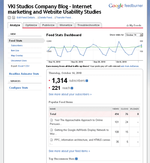 And don’t get me started on aggregation. Aggregation is a sin right? So why is it that the only way I can sort my data is by subscribers, item use (arguably the most useful), uncommon use, and geography (why do I need to know where in the world my feed subscribers are from? How can I use this information? And if there are uses for it, won’t GA visitor location data give me the same insight?). Where is is “segment by visitors who clicked” or “by downloads”. What kind of insight am I supposed to garner from this information?